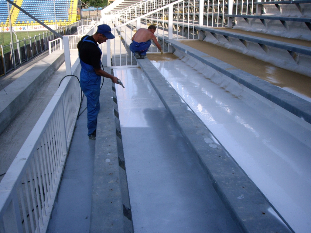 Вид работ: Защита бетонных трибун.