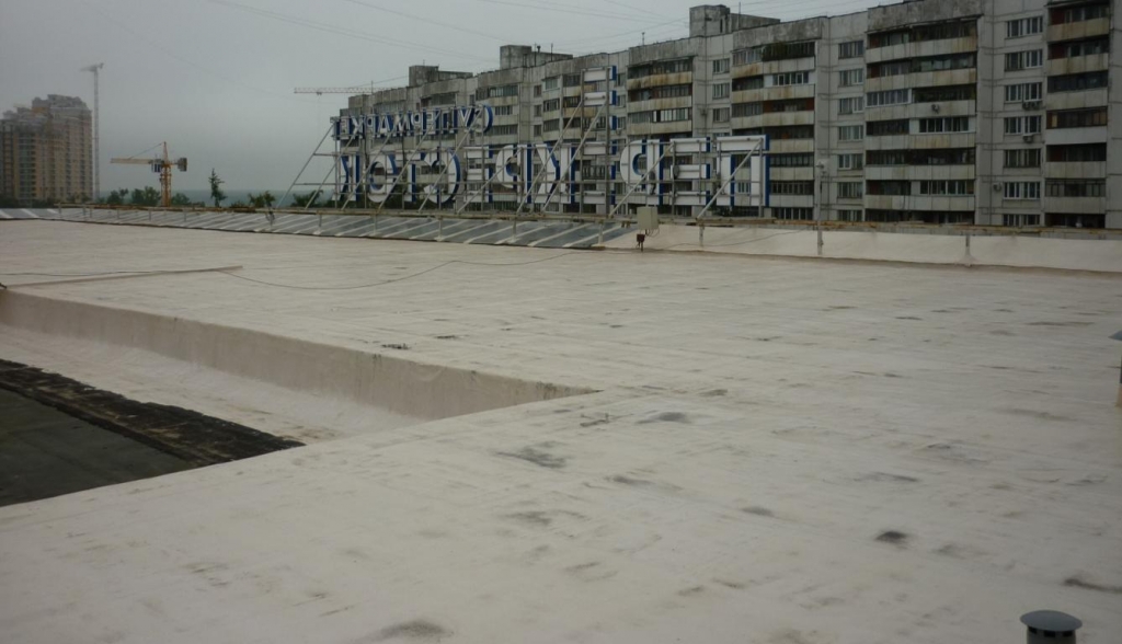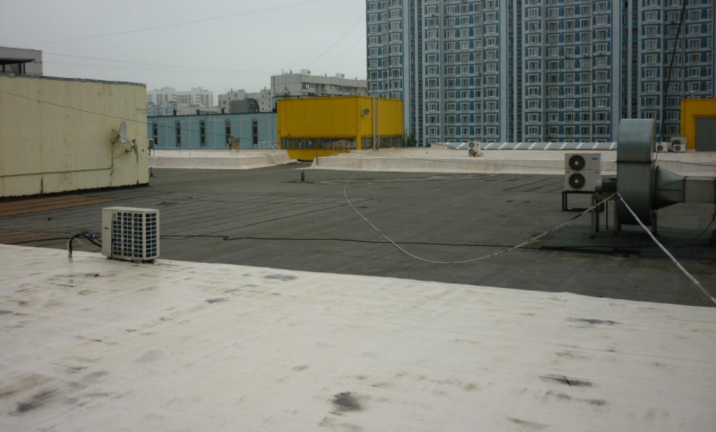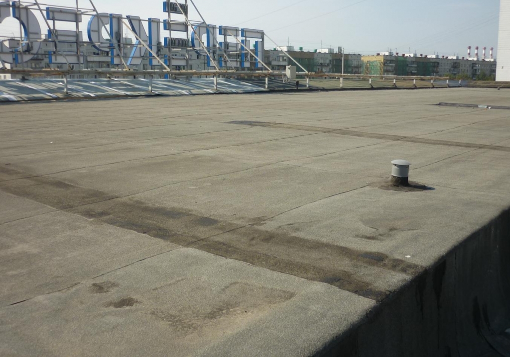 Ремонт кровли без удаления старого покрытия из битумных материалов на здании торгового центра